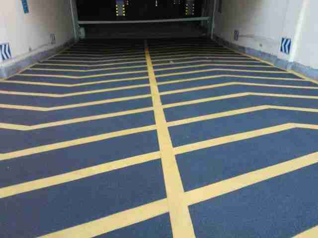 還有一種措施是以前用的環氧樹脂加沙做出的防滑坡道,曾風靡一時,但是,環氧樹脂沒有耐候性,耐壓性不夠,使用時間很短就會出現褪色起殼等現象,這些都不是很好的防滑措施。