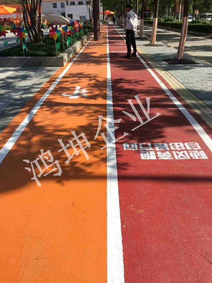 彩色防滑路面是“綠道”的重要組成部分。綠道的概念起源于歐美國家,英譯“綠道”——greenway,分為兩部分:“green”表示自然存在——諸如森林河岸,野生動植物等;“way”表示通道。合起來的意思就是與人為開發的景觀相交叉的一種自然走廊。綠道,是一種線型綠色開敞空間,通常沿著河濱、溪谷、山脊、風景道路、鐵路、溝渠等自然和人工廊道建設,內設可供游人和騎車者進入的景觀線路,連接主要的公路、自然保護區、風景名勝區、歷史古跡和城鄉居民居住區等。