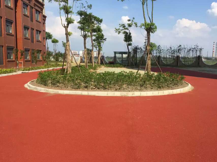 基礎地面處理的話,確認一下是水泥地面還是瀝青路面,清理干凈表面的灰塵雜物,如果有條件的話,用消防水沖洗一遍路面更好。基礎處理好后在表面批刮綠道樹脂,用量是根據施工的厚度來確定,批刮樹脂的同時要滿撒彩色顆粒,等干燥后清掃下來還可以繼續使用。